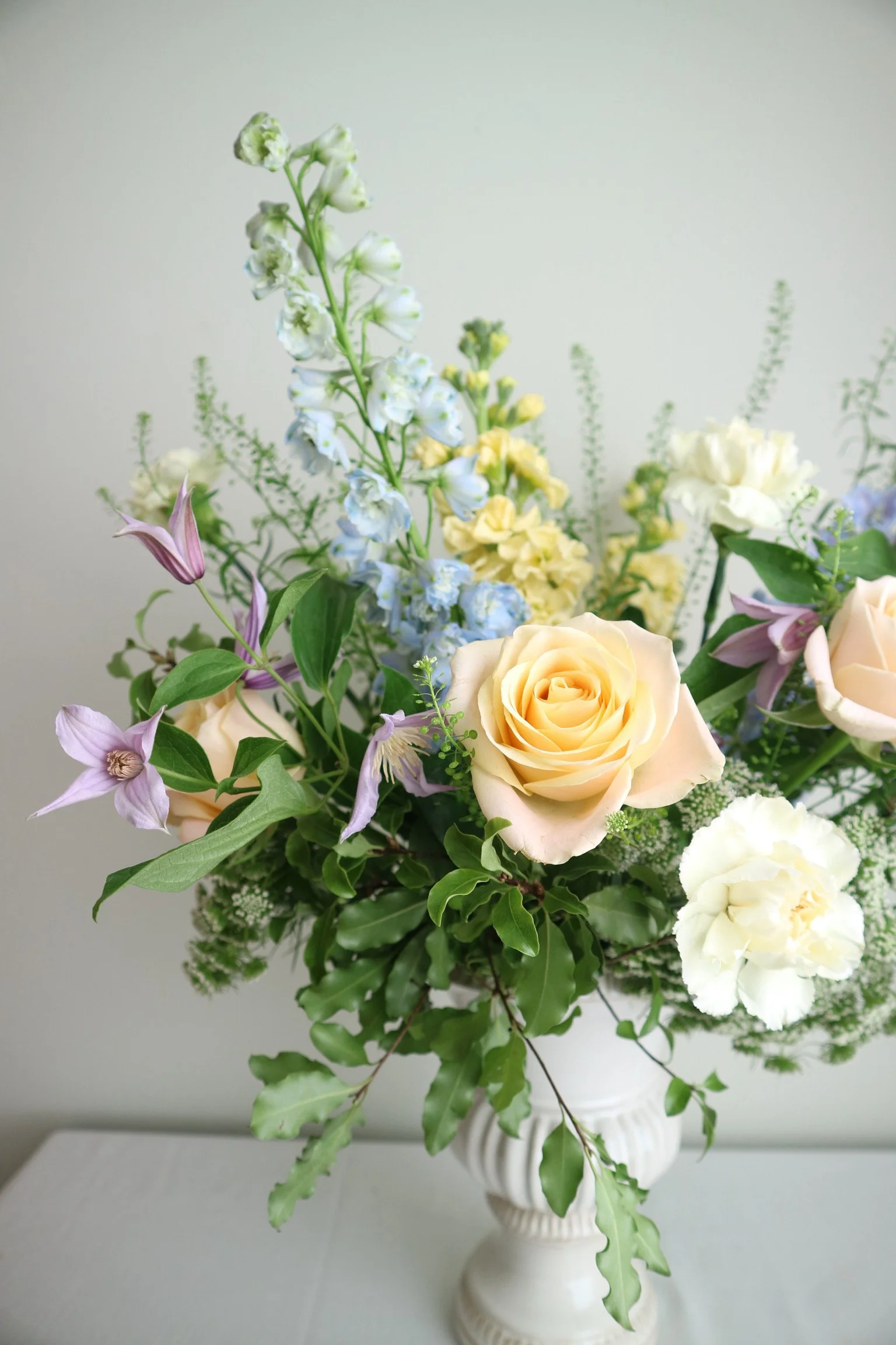 Signature floral bouquet made up of Ailsa’s choice of seasonal cool pastels and foliage. Each and every bouquet is bespoke so may vary from photograph.